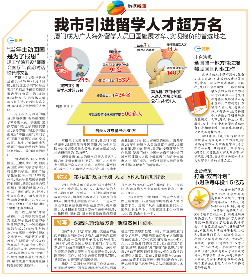 廈門艾德生物醫(yī)藥科技股份有限公司(股票代碼:300685)聚焦在腫瘤精準(zhǔn)醫(yī)療分子診斷領(lǐng)域,專注于科技惠民的技術(shù)創(chuàng)新,致力為患者提供合規(guī)、高品質(zhì)的診斷產(chǎn)品和服務(wù),讓患者從精準(zhǔn)醫(yī)療中真正獲益。公司擁有國家企業(yè)技術(shù)中心、工信部專精特新小巨人企業(yè)、國家級制造業(yè)單項(xiàng)冠軍企業(yè)、博士后科研工作站、發(fā)改委基因檢測技術(shù)應(yīng)用示范中心、國家高新技術(shù)企業(yè)、福建省腫瘤高通量測序工程研究中心等資質(zhì),GMP標(biāo)準(zhǔn)廠房獲得國家藥監(jiān)局(NMPA)和歐盟ISO13485資質(zhì)認(rèn)證;公司擁有ADx-ARMS?、Super-ARMS?、ddCapture?、ADx-HANDLE?等核心技術(shù),核心技術(shù)獲得中國、美國、歐盟、日本授權(quán),榮獲國家科學(xué)技術(shù)進(jìn)步獎二等獎、中國專利獎銀獎;公司產(chǎn)品覆蓋具備精準(zhǔn)醫(yī)療條件的各大癌種,多個(gè)產(chǎn)品至今尚無競品,除了在國內(nèi)三甲醫(yī)院大規(guī)模應(yīng)用外,部分產(chǎn)品在日本、韓國獲批上市并進(jìn)入當(dāng)?shù)蒯t(yī)保,開創(chuàng)了我國腫瘤伴隨診斷海外獲批的先例。此外,公司下設(shè)廈門艾德醫(yī)學(xué)檢驗(yàn)所、上海廈維醫(yī)學(xué)檢驗(yàn)所,擁有醫(yī)療機(jī)構(gòu)執(zhí)業(yè)許可證、通過美國病理學(xué)會(CAP)認(rèn)證和ISO15189認(rèn)可,專業(yè)從事第三方臨檢服務(wù)。目前全球數(shù)十個(gè)國家和地區(qū)的客戶選擇了艾德產(chǎn)品和服務(wù),每年有數(shù)十萬腫瘤患者從中受益。此外,公司瞄準(zhǔn)行業(yè)創(chuàng)新源頭,以伴隨診斷賦能原研藥物臨床,是眾多頂級藥企腫瘤藥物開發(fā)的戰(zhàn)略合作伙伴,是國際知名的民族品牌。