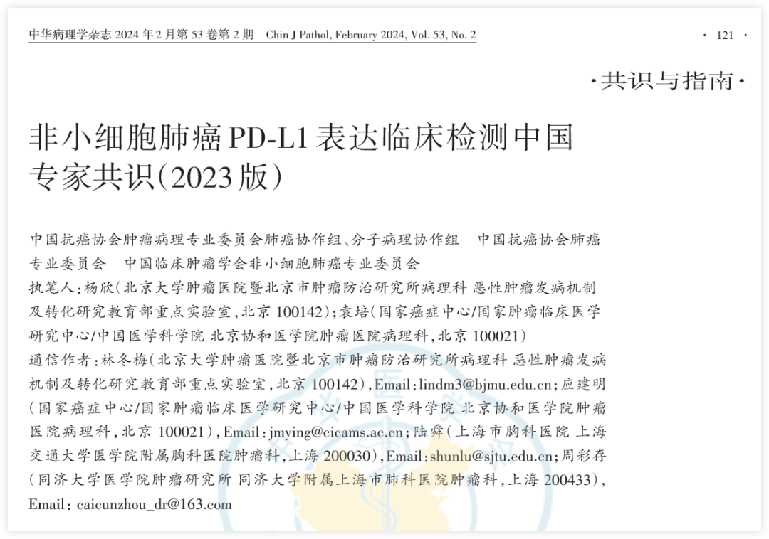 《中華病理學(xué)雜志》2023版PD-L1共識原文首頁圖片