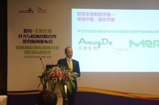 中國北京,2016年7月28日,總部位于廈門的腫瘤精準檢測領(lǐng)域優(yōu)勢企業(yè)艾德生物與全球先進的科技公司默克共同宣布簽署了一項新的合作協(xié)議,啟動艾德生物-默克“精確檢測,精準治療”結(jié)直腸癌RAS檢測項目。該項目將致力于結(jié)直腸癌檢測中新型RAS液體活檢在全球的開發(fā)和推廣,以及腫瘤組織RAS檢測在中國大陸的推廣,為結(jié)直腸癌患者提供絕佳的、及時的個體化診療方案,改善治療現(xiàn)狀,使患者獲得更多治療和生存獲益。“精確檢測,精準治療”項目中所應用的新型RAS液體活檢將采用計劃于2017年進入中國市場的艾德生物ADx-SuperARMS®技術(shù)。